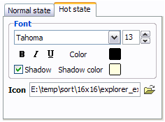 "Open" dialog will appear, where you can choose an icon. Other way to assign an icon is to type its full path and name in the "Icon" field ("c:\myicons\stylish_3\pretty.ico", for example). Repeat this for each menu button. You should get something like this in result:
