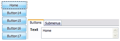 - Let's assign text to the web menu buttons. Select first web button by clicking it and then enter text in the "Text" field on the Properties toolbox. You will see that, as you enter the text, the selected button's text will change too.