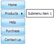 - To create submenus you should choose the button at first. Let's add 6 subitems for the "Products" button for example. To add submenus you should click "Add submenu" button situated on the button builder Toolbar once.