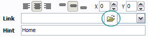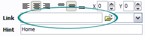 - Now let's set the html buttons web-behavior. That is, set their Link properties. To set the button link, select the button by clicking it and then enter the link address in the "Link" field on the Properties toolbox.