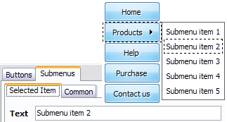 - Let's assign text to the subitems. Select first item in the submenu by clicking it and then enter text in the "Text" field on the Properties toolbox. You will see that, as you enter the text, the selected submenu's text will change too.