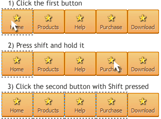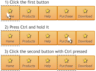 Left-click a button to select. If you want several buttons web to be selected use Shift and Ctrl keys.