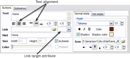 This toolbox is for adjusting the buttons' properties. You can adjust one single button or a group of web page buttons selected with Ctrl/Shift keys at once.